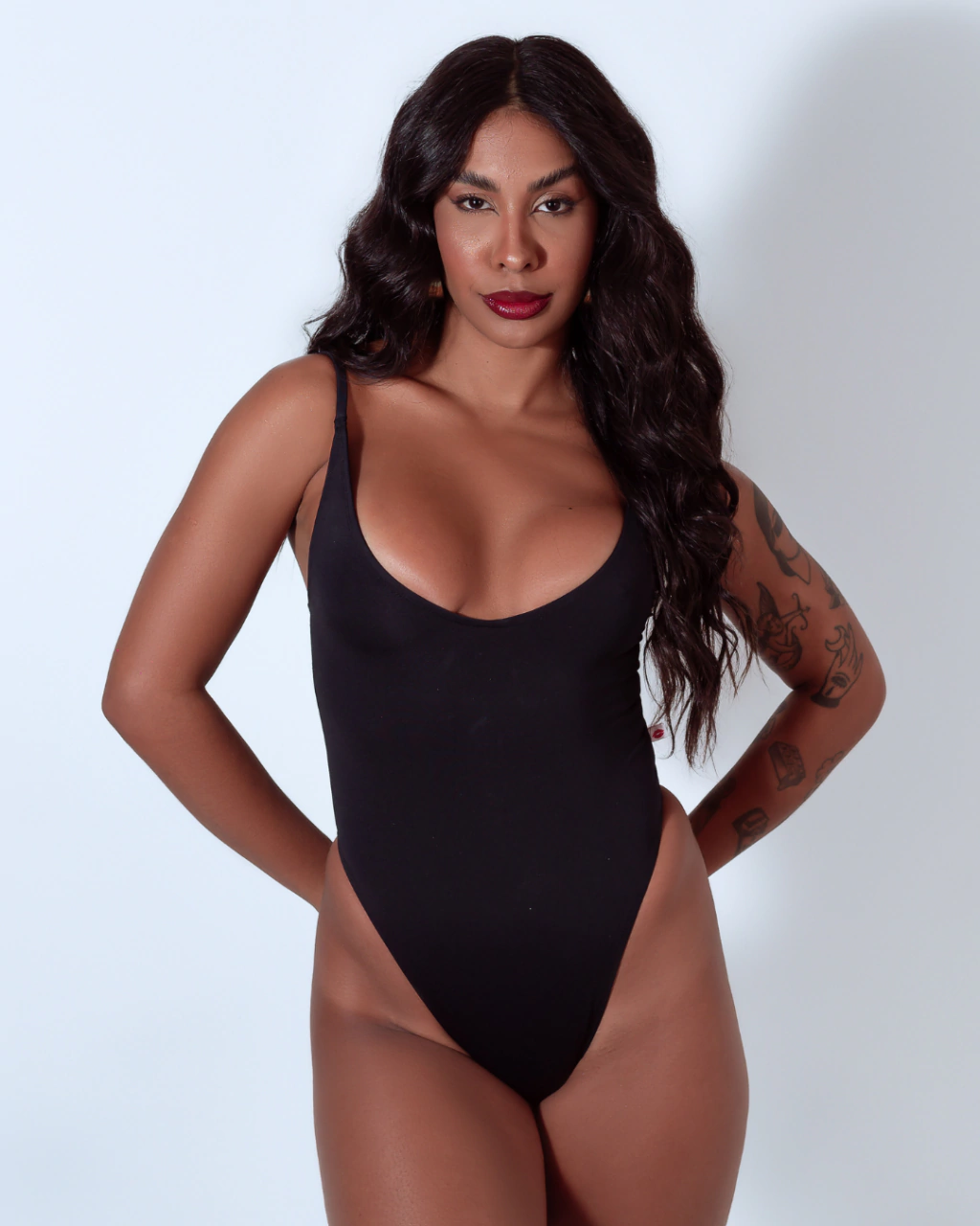 Possui um decote com média cava na parte superior e inferior (que valoriza suas curvas de uma forma que você nem imagina). Possui alças reguláveis e reguladores banhados em ônix (o que garante uma maior durabilidade a sua peça).