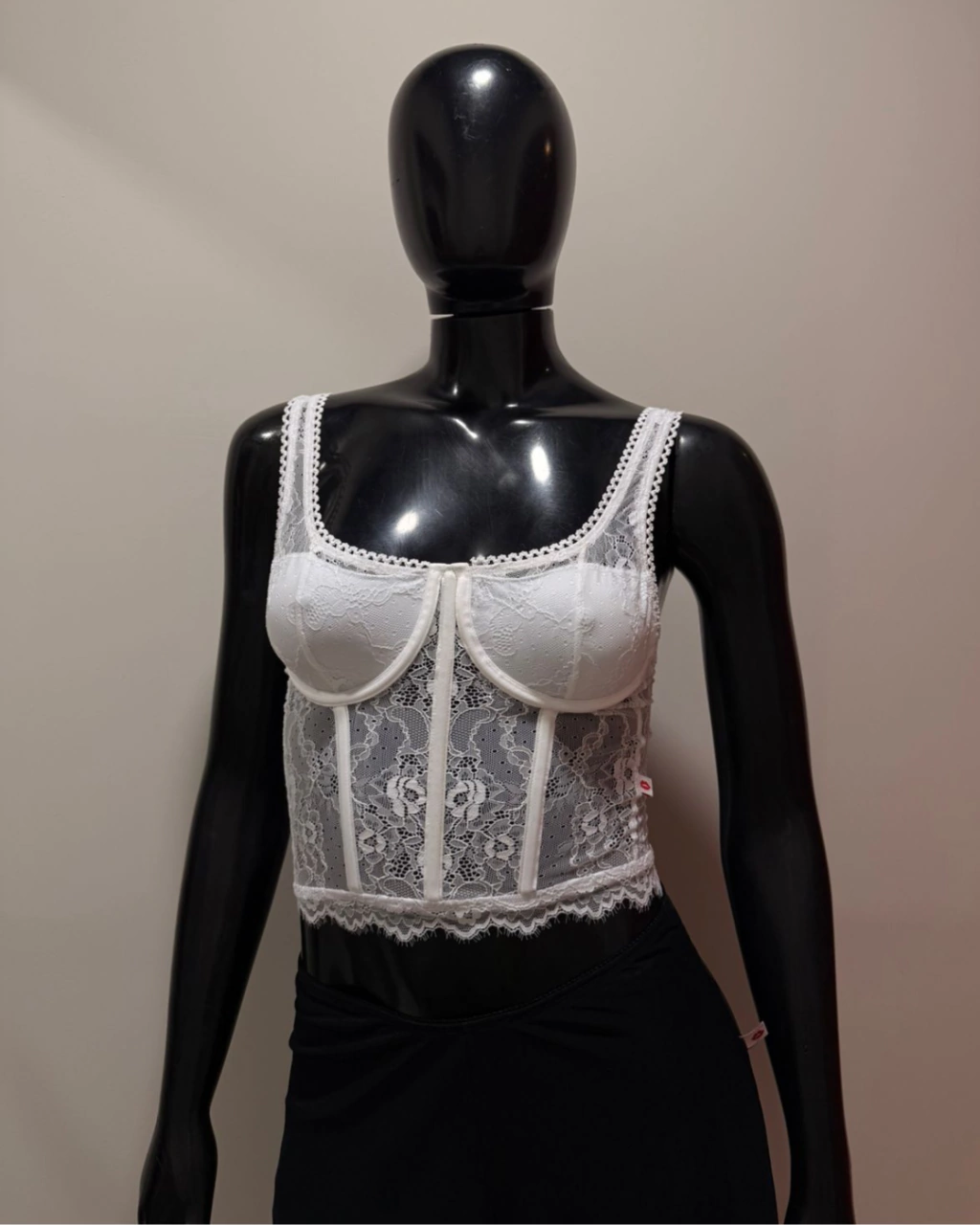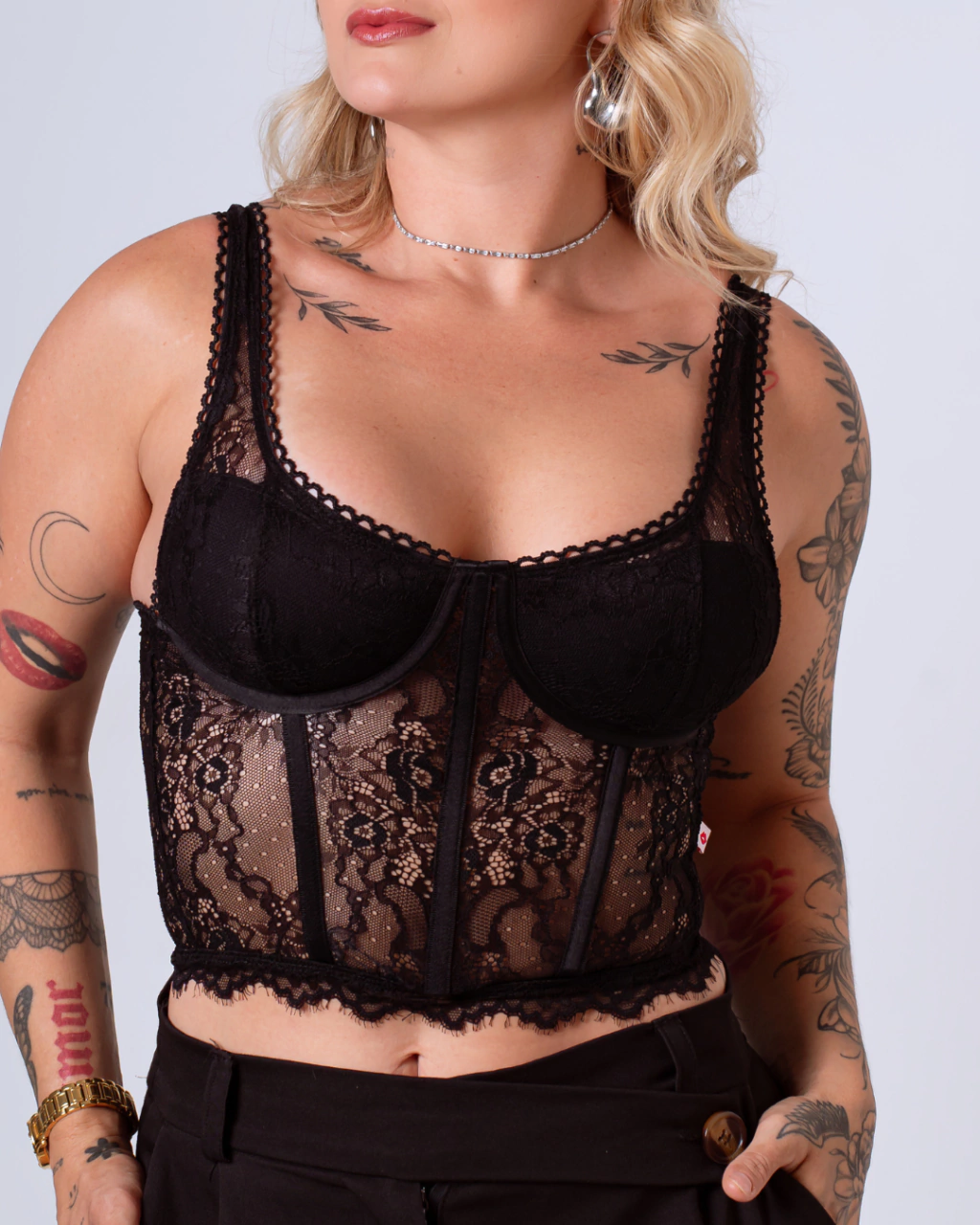 Simplesmente incrivel, com modelagem mais longuinha, alças mais largas (que te dão mais sustentação e seguarança), todo feito em renda, com barbatanas plasticas e aros de plastico (que não machucam, tá?).
