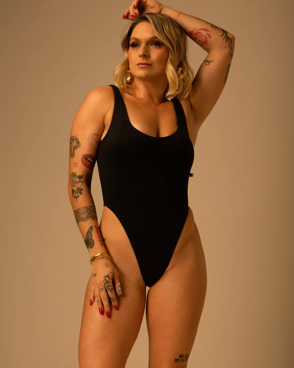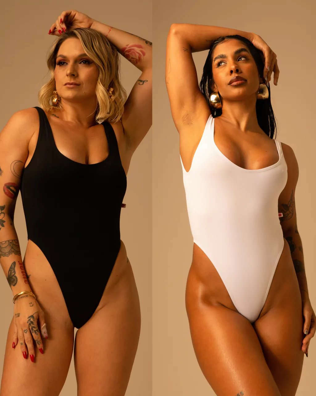 Desenvolvemos uma modelagem exclusiva muito abusada: bem asadelta, super cavada pra um body clássico. O que faz dele incrível.